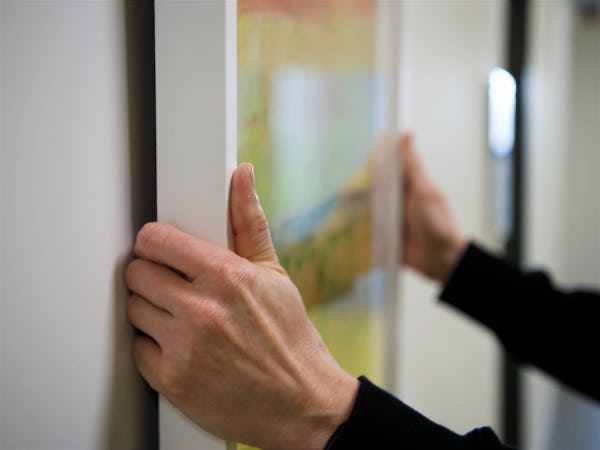 Every framed print comes with a complementary hanging guide, complete with a wall plug and a double-headed screw.